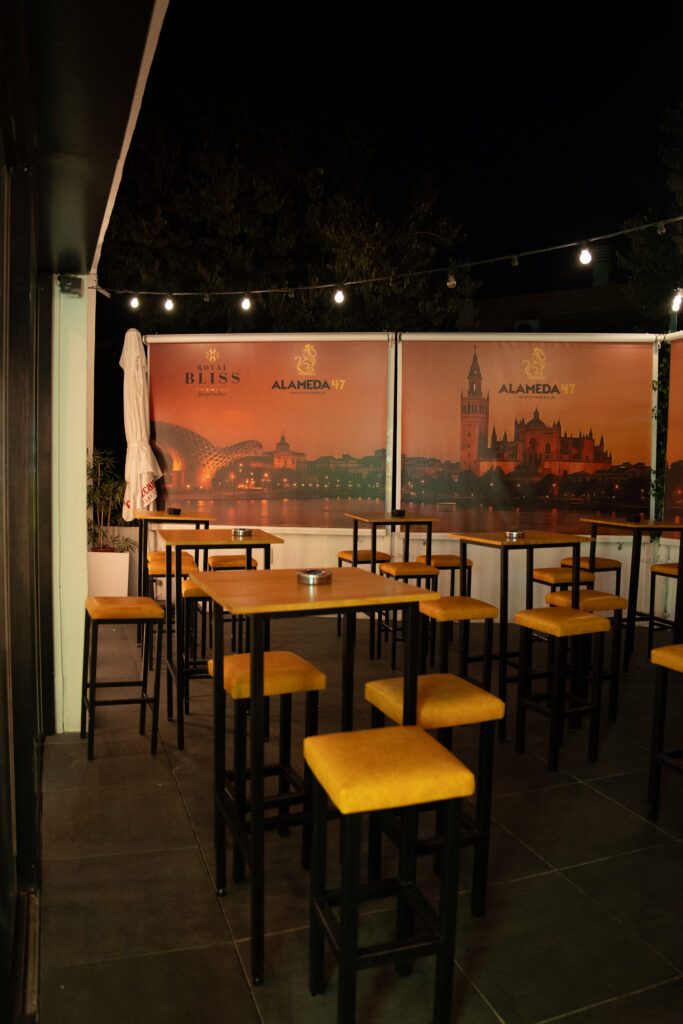 Ubicado en plena Alameda de Hércules, el local combina ambiente, música, imagen y una energía muy propia. La idea es que cada visita tenga su momento: más relajado al principio, más social a medida que avanza la tarde y más vibrante cuando llega la noche.